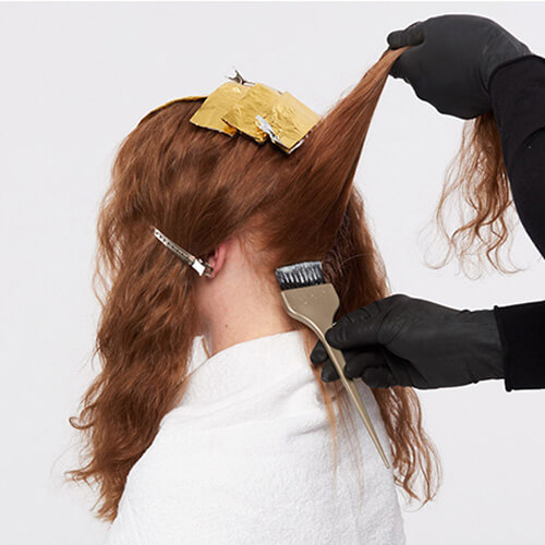 Continue base color application in the crown area to the new growth between the foils.